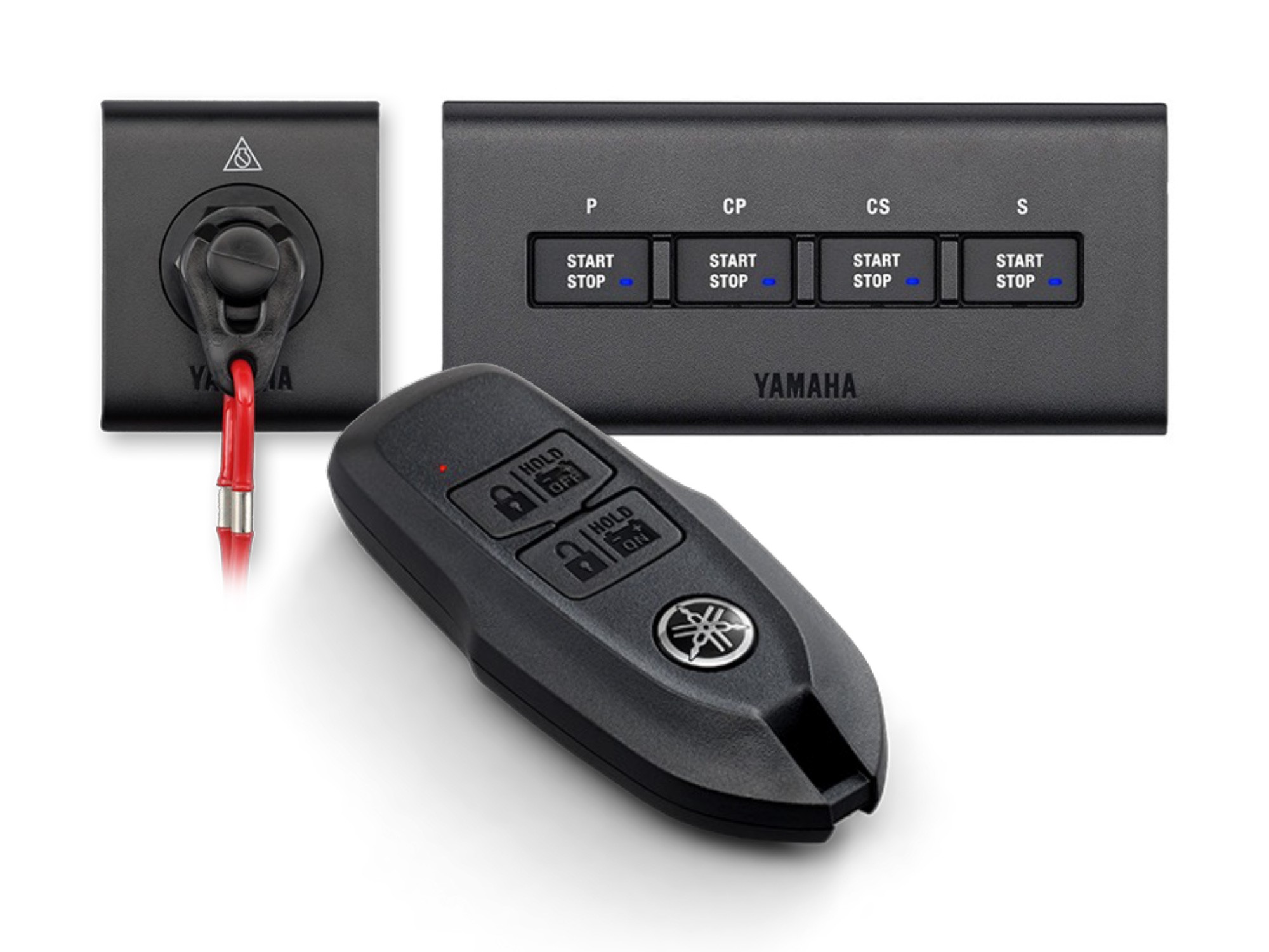Stop/Start Panels are available for single- or multi-engine configurations. They feature slim, backlit, button-push designs that preserve dash space. For multi-engine rigs, a small All Start Panel can also be added. All panels work with the Helm Master EX buoyant Wireless Key FOB for keyless ignition and the engagement of our optional Y-COP® Anti-Theft System.