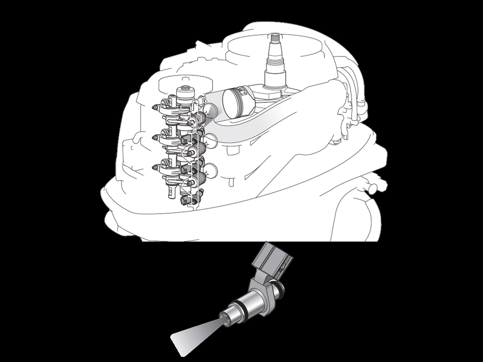Working in unison with multiple sensors and the electonic control unit, the Multi-Point Electronic Fuel Injection (EFI) system injects the right air - fuel mixture at the optimum timing.