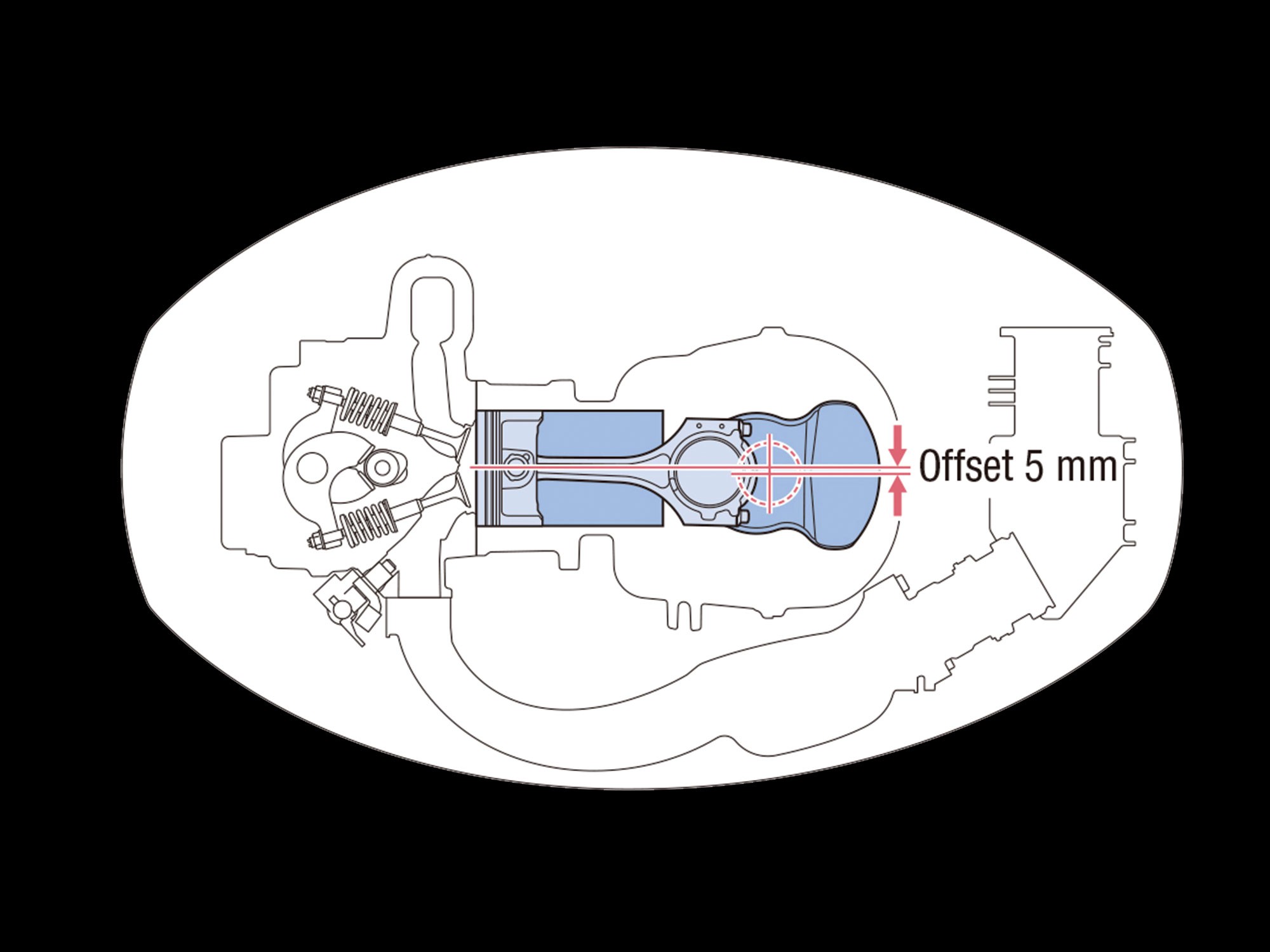 The 5mm Offset Crankshaft allows for larger intake volume and intake tubes, boosting engine torque in the low and mid-speed ranges for quicker acceleration.